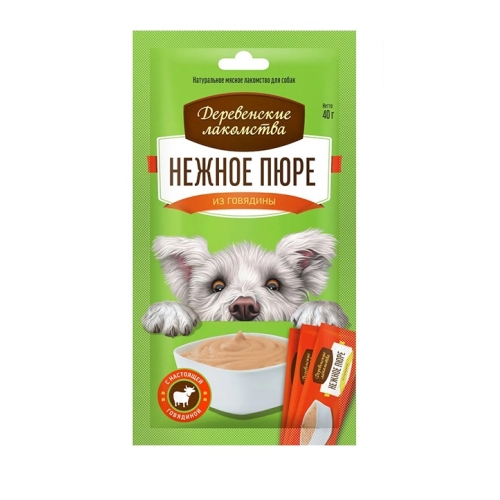 Нежное пюре — изысканный десерт для собак. Изготовлено исключительно из натуральных ингредиентов. Собаки очень любят это нежное угощение с ярким вкусом мяса и не отойдут от миски, пока не слижут всё до капли. Удобная упаковка позволяет легко выложить пюре в миску или кормить питомца прямо из пачки.