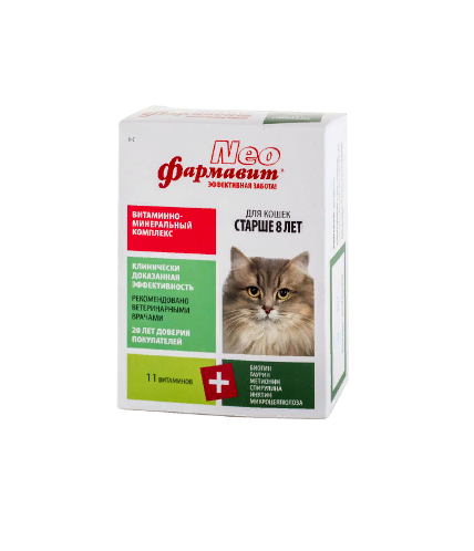 Фармавит Neo – комплекс витаминов, минералов и аминокислот, подобранных с учетом физиологических особенностей кошек старше 8 лет.