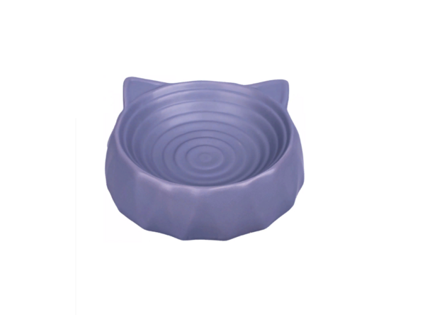 Стильный дизайн впишется в любой смелый интерьер. Миска выполнена из качественной керамики. Не выцветает и не теряет своих свойств. Миска подойдёт котятам или взрослым кошкам, благодаря небольшой высоте. Можно использовать для корма, лакомств или воды.