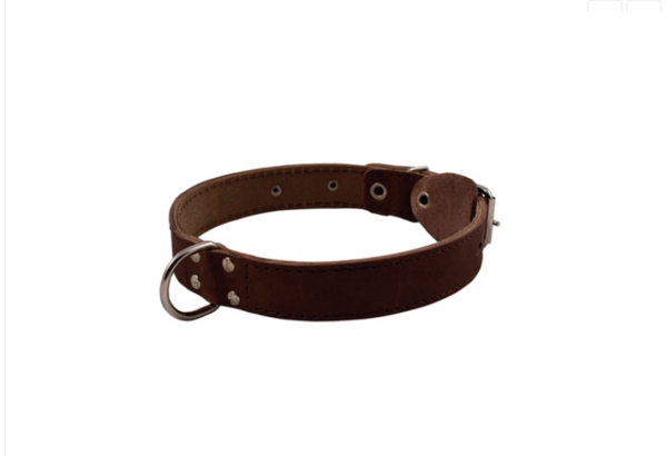 Ошейник кожаный двойной с кольцом посередине / 35ммх55-64см